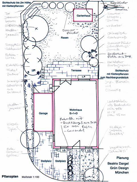 Neubau-Doppelhaushälfte - von der Handskizze bis zum Pflanzplan