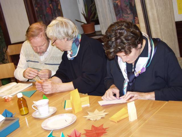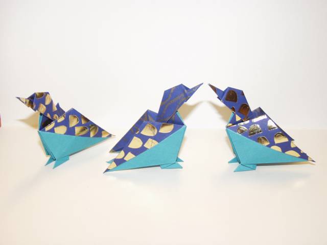 Muschel, Mäuse und andere Vögel, gefaltete Tüten sind neue Kreation von Carmen Sprung, Idee dazu erst wenige Tage jung, (noch) ohne Diagramm, Mitfalten beim nächsten Stammtisch lohnt sich auf jeden Fall, Gäste sind immer willkommen