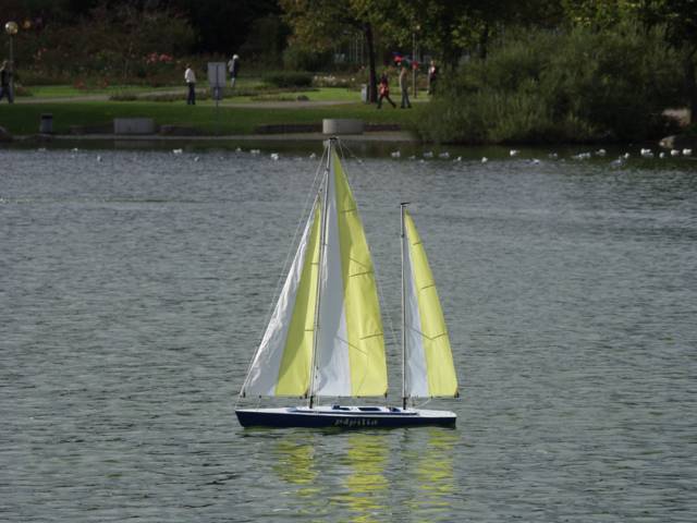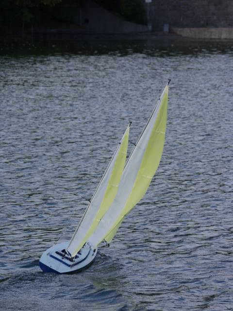 Ein Segler "fängt" den Wind ein und macht gute Fahrt. Ab und zu ist ganz schön was los auf dem Wasser